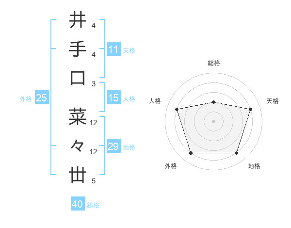 井手口 菜々丗さんを姓名の画数から五運を鑑定