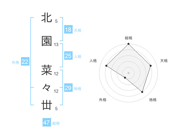 北園 菜々丗さんを姓名の画数から五運を鑑定