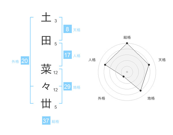 土田 菜々丗さんを姓名の画数から五運を鑑定