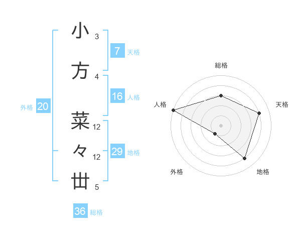 小方 菜々丗さんの総格は36画の3点