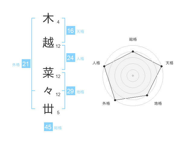 木越 菜々丗さんを姓名の画数から五運を鑑定
