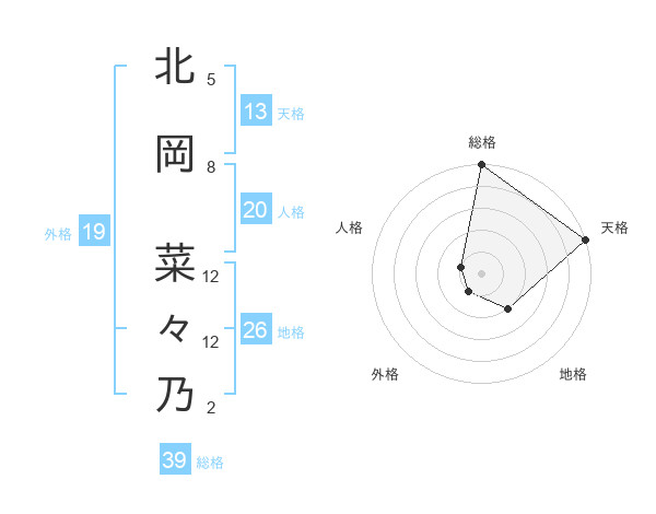 北岡 菜々乃さんを姓名の画数から五運を鑑定