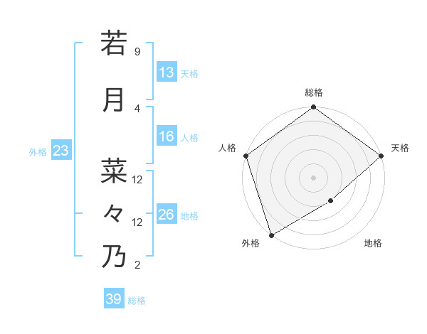 若月 菜々乃さんの地格は26画の2点!