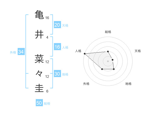 亀井 菜々圭さんの総格は50画の2点!