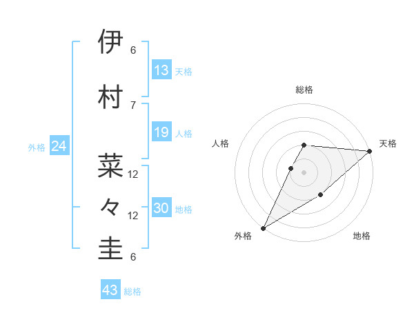 伊村 菜々圭さんの天格は13画の5点!