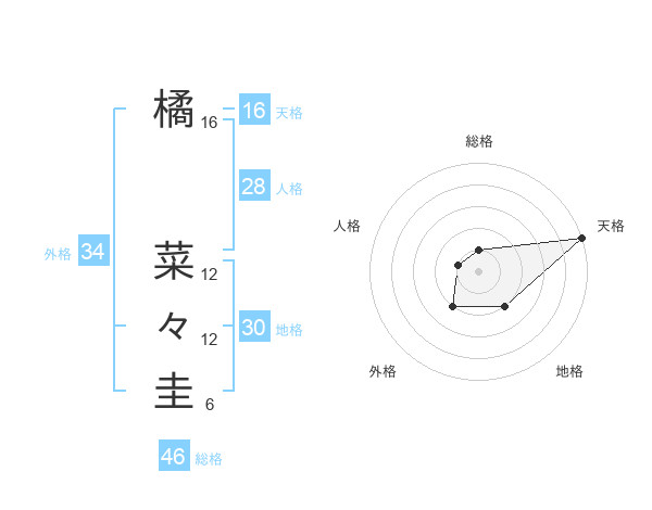 橘 菜々圭さんの天格は16画の5点!