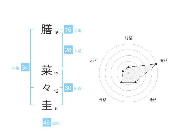 膳 菜々圭さんを姓名の画数から五運を鑑定