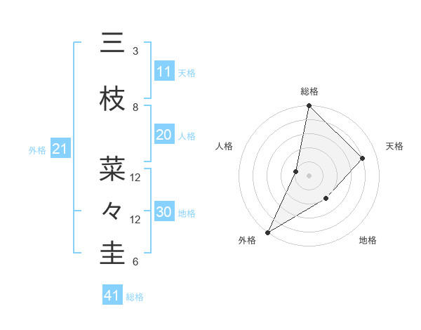 三枝 菜々圭さんを姓名の画数から五運を鑑定