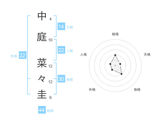 中庭 菜々圭さんを姓名の画数から五運を鑑定