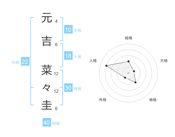元吉 菜々圭さんの総格は40画の2点!