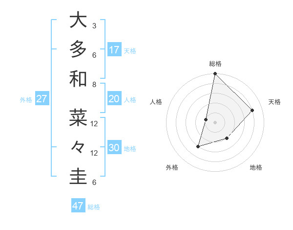 大多和 菜々圭さんの総格は47画の5点!