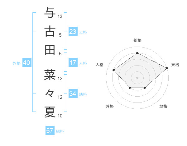 与古田 菜々夏さんを姓名の画数から五運を鑑定