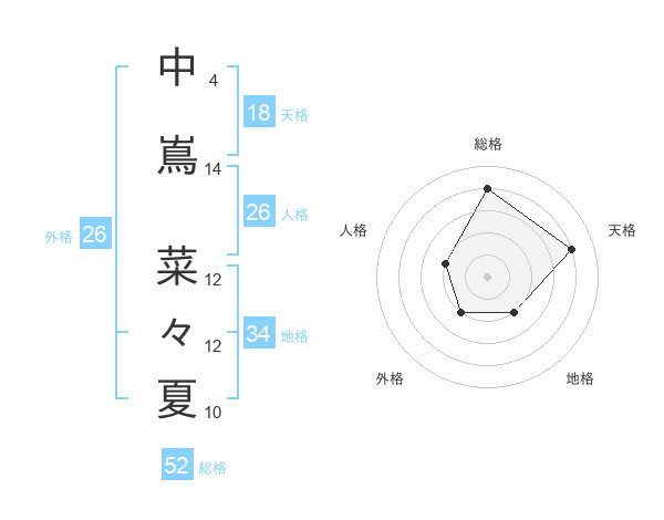 中嶌 菜々夏さんを姓名の画数から五運を鑑定