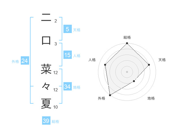 二口 菜々夏さんの総格は39画の5点!