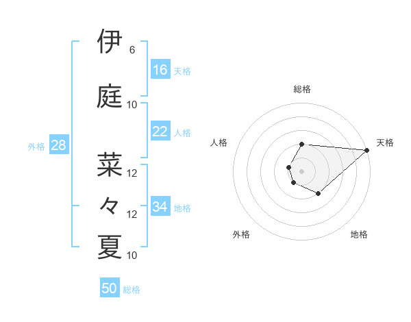 伊庭 菜々夏さんを姓名の画数から五運を鑑定