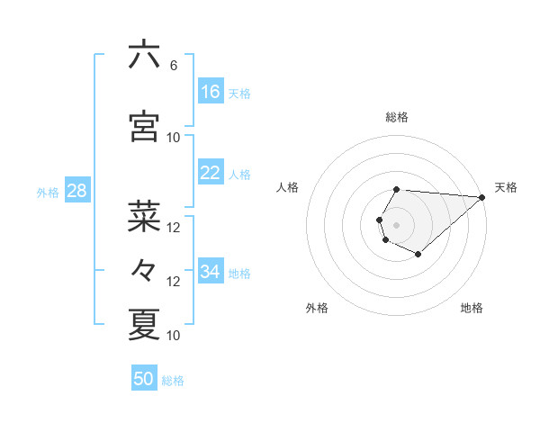 六宮 菜々夏さんの総格は50画の2点!