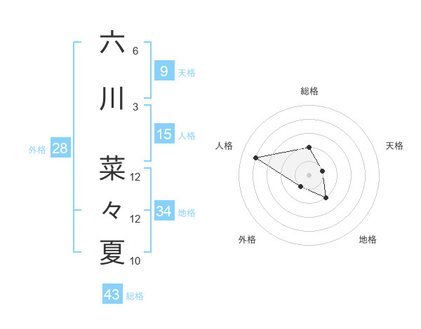 六川 菜々夏さんを姓名の画数から五運を鑑定