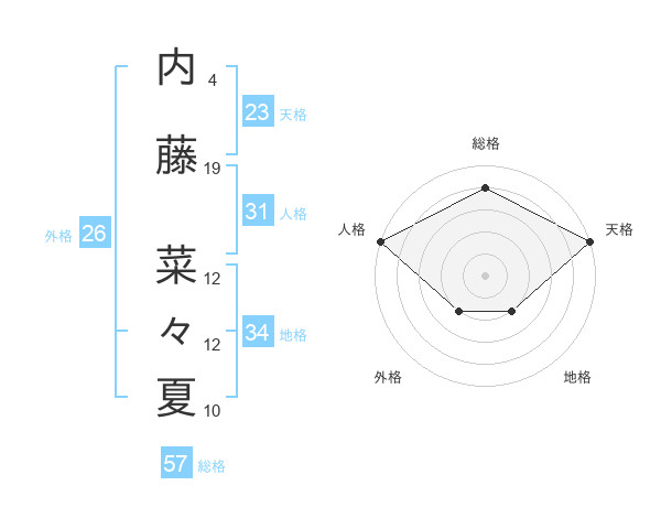 内藤 菜々夏さんの総格は57画の4点!