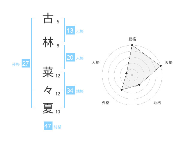 古林 菜々夏さんを姓名の画数から五運を鑑定