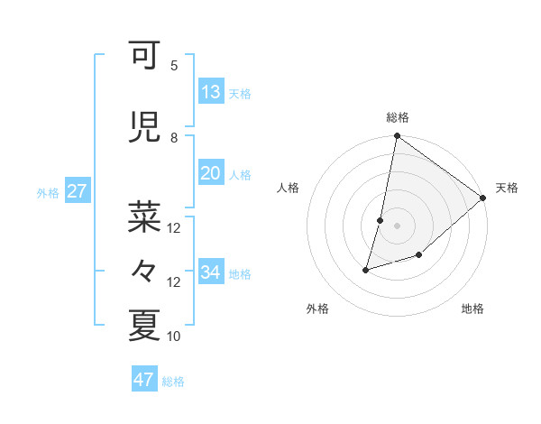 可児 菜々夏さんを姓名の画数から五運を鑑定