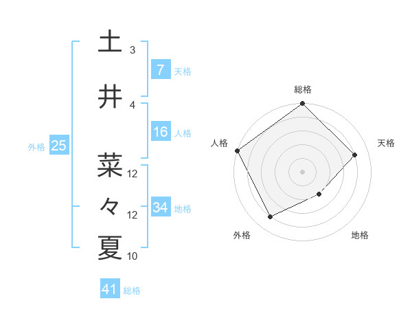 土井 菜々夏さんの総格は41画の5点!