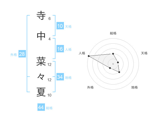 寺中 菜々夏さんの総格は44画の2点!