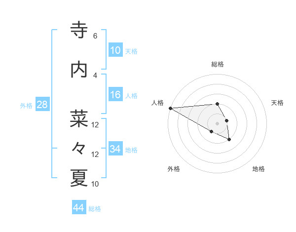 寺内 菜々夏さんの総格は44画の2点!