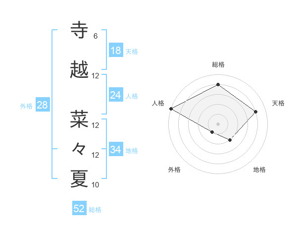 寺越 菜々夏さんを姓名の画数から五運を鑑定
