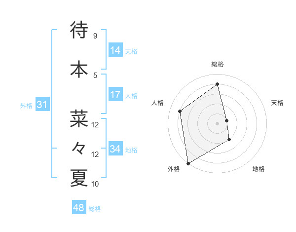 待本 菜々夏さんを姓名の画数から五運を鑑定