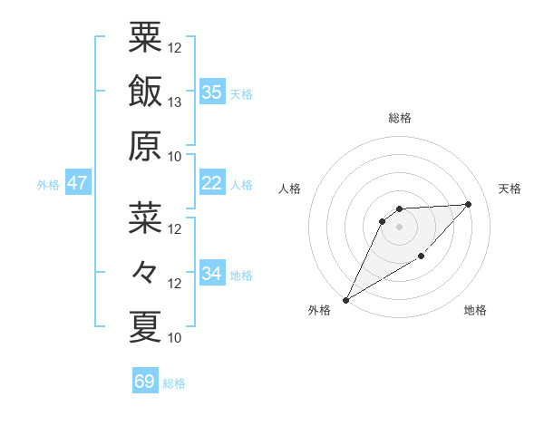 粟飯原 菜々夏さんを姓名の画数から五運を鑑定