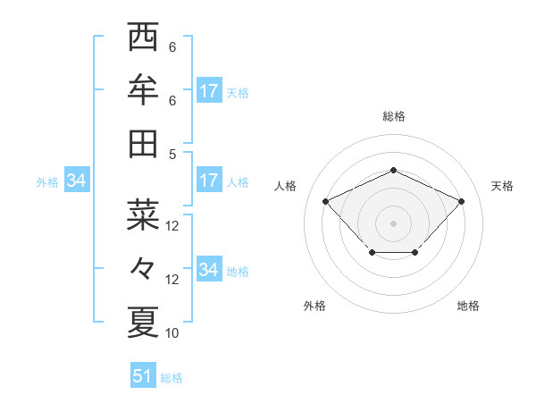 西牟田 菜々夏さんを姓名の画数から五運を鑑定