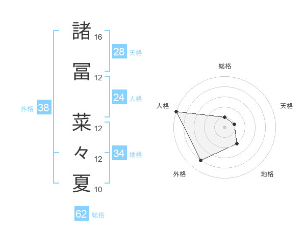 諸冨 菜々夏さんを姓名の画数から五運を鑑定