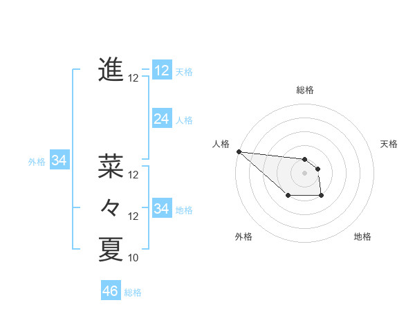 進 菜々夏さんの総格は46画の1点!