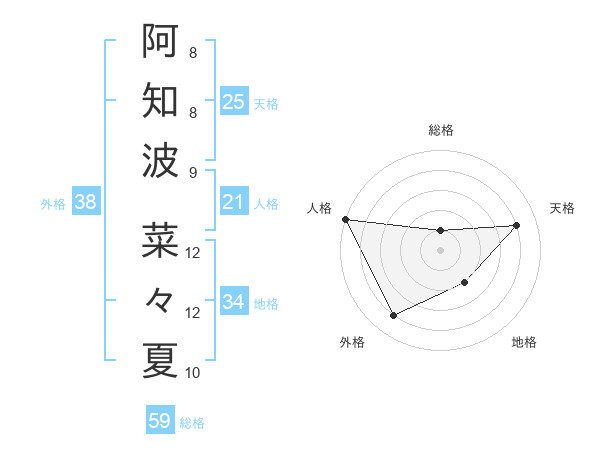 阿知波 菜々夏さんの天格は25画の4点!