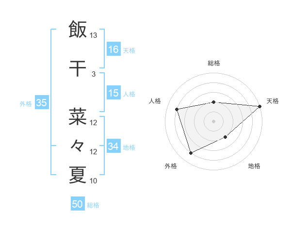 飯干 菜々夏さんの総格は50画の2点!