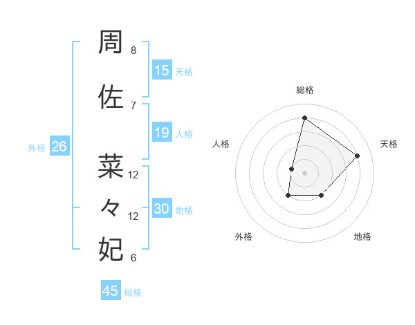 周佐 菜々妃さんの総格は45画の4点!