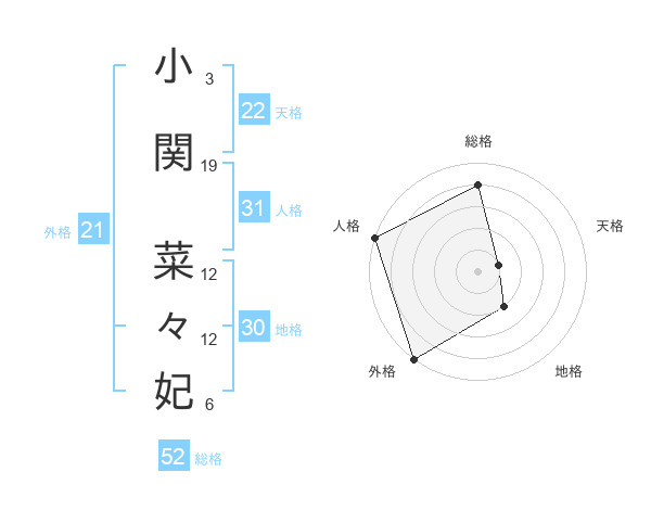 小関 菜々妃さんを姓名の画数から五運を鑑定