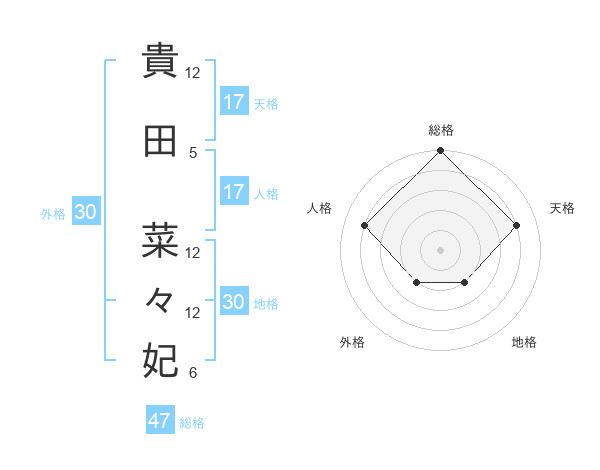 貴田 菜々妃さんの天格は17画の4点!