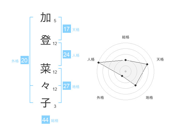 加登 菜々子さんを姓名の画数から五運を鑑定