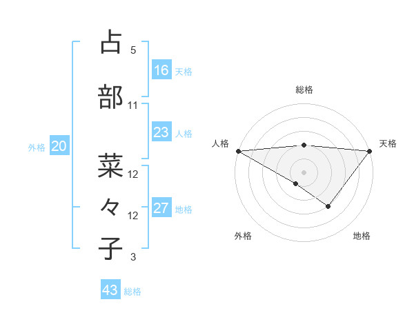 占部 菜々子さんを姓名の画数から五運を鑑定