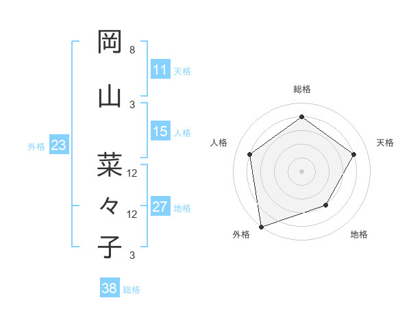 岡山 菜々子さんの総格は38画の4点!