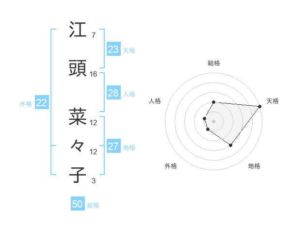 江頭 菜々子さんを姓名の画数から五運を鑑定