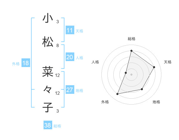 小松 菜々子さんの総格は38画の4点!