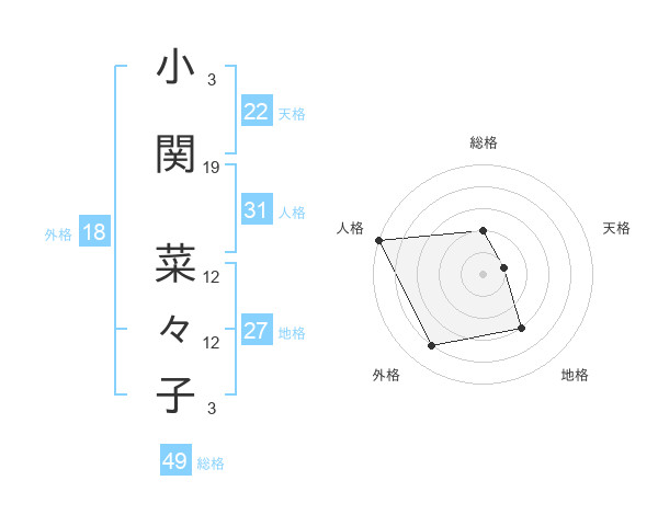 小関 菜々子さんを姓名の画数から五運を鑑定