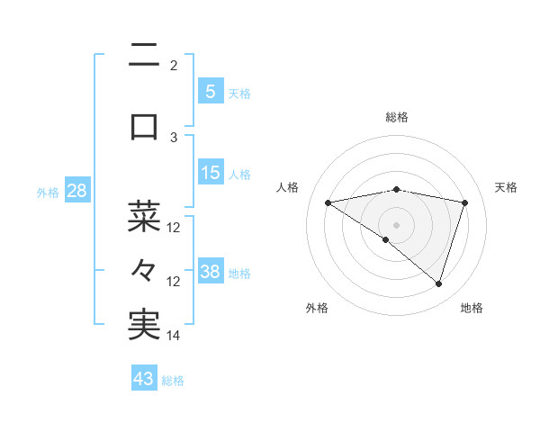 二口 菜々実さんの総格は43画の2点!