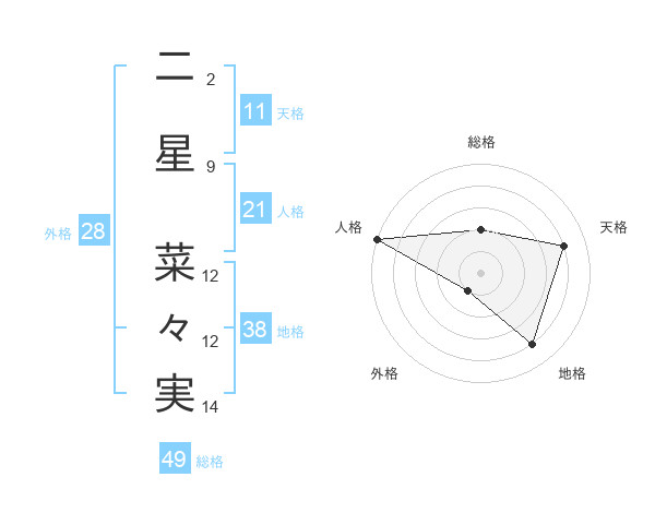 二星 菜々実さんの総格は49画の2点!