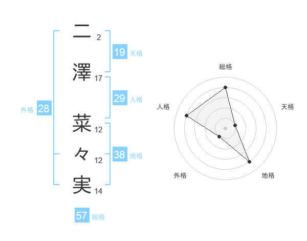 二澤 菜々実さんの地格は38画の4点!