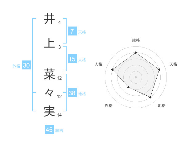 井上 菜々実さんを姓名の画数から五運を鑑定