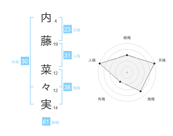 内藤 菜々実さんの総格は61画の3点!