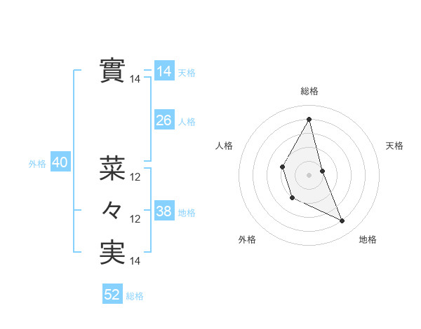 實 菜々実さんの総格は52画の4点!
